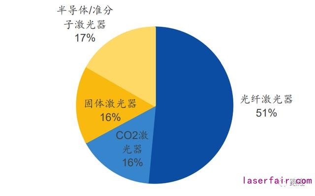 根據(jù)Laser Focus World 統(tǒng)計,2019 年材料加工與光刻市場規(guī)模為 60.3 億美元,依舊為全球激光器應(yīng)用市場最大細(xì)分領(lǐng)域,通信與光儲存以 39.8 億美元的規(guī)模位居第二。高功率加工市場 2019 年規(guī)模約為 29.7 億美元,其中伴隨激光功率不斷提升金屬切割為主要應(yīng)用,規(guī)模約為 20.9 億美元,2019 年金屬焊接市場需求大增,占比同比提升 5 個百分點(diǎn),主要受益于汽車、動力電池行業(yè)需求,預(yù)計將仍有大量增長空間。