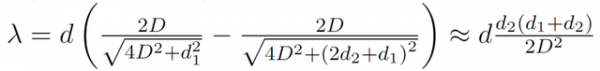 測量直射光線光斑與反射光線的光斑之間的距離d1,及反射光線的光斑與一級干涉條紋的光斑之間的距離d2。
