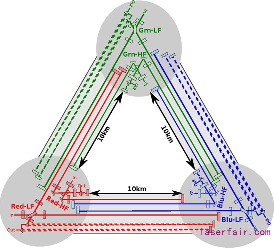 而歐洲也想打造這樣一臺(tái)夢(mèng)想中的探測(cè)器,稱(chēng)其為“愛(ài)因斯坦望遠(yuǎn)鏡”,簡(jiǎn)稱(chēng)為“ET”。據(jù)悉,它將由三條10公里長(zhǎng)的探測(cè)臂構(gòu)成,在地下組成一個(gè)巨大的三角形。選址可能包括地中海中的撒丁島、以及由荷蘭、比利時(shí)和德國(guó)三國(guó)邊境構(gòu)成的三角形等等。