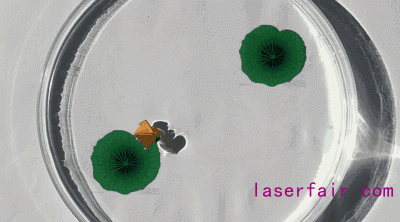 (十字形集成致動器在白熾燈照射下在培養(yǎng)基中的旋轉運動的GIF)