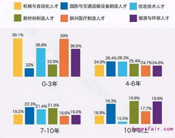有相關(guān)的數(shù)據(jù)顯示,國內(nèi)的制造業(yè)相關(guān)的6類行業(yè)中人才數(shù)目達到248萬,而其中機械與自動化人才信息技術(shù)人才占有多數(shù)。同時機械制造業(yè)的人才從業(yè)年數(shù)隨著年限的增長數(shù)量也是在逐漸減少。