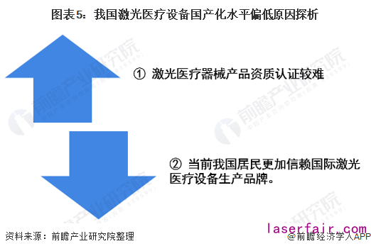 據(jù)2020年3月27日由中國科學院武漢文獻情報中心主導《2020中國激光產(chǎn)業(yè)發(fā)展報告》在線發(fā)布會顯示,目前我國激光醫(yī)療設(shè)備市場的發(fā)展仍不及預期,市場增速仍較緩。同時,從國產(chǎn)化程度來看,目前我國國產(chǎn)化水平仍然偏低,雖然我國部分國產(chǎn)化設(shè)備已經(jīng)進入部分醫(yī)療機構(gòu)及美容機構(gòu),但在我國三甲以上醫(yī)院中,激光醫(yī)療器械仍多采用進口,主要是由于一是激光醫(yī)療器械產(chǎn)品資質(zhì)認證較難,二是當前我國居民更加信賴國際激光醫(yī)療設(shè)備生產(chǎn)品牌。