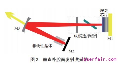 垂直外腔激光器(見圖2)的高性能和靈活性特點使其非常適合定制化應用,其發(fā)展應該緊密結合應用,以平臺建設為主,兼顧多波長、多輸出特點的實用技術開發(fā)。一方面需要針對 VECSEL 本身的平臺化技術進行創(chuàng)新研發(fā);另一方面,迫切需要進行面向具體應用的特定技術開發(fā)和擴展,如開發(fā)適用于特殊波長、高光束質量、窄線寬、寬調諧范圍等應用的高性能激光系統(tǒng)等。