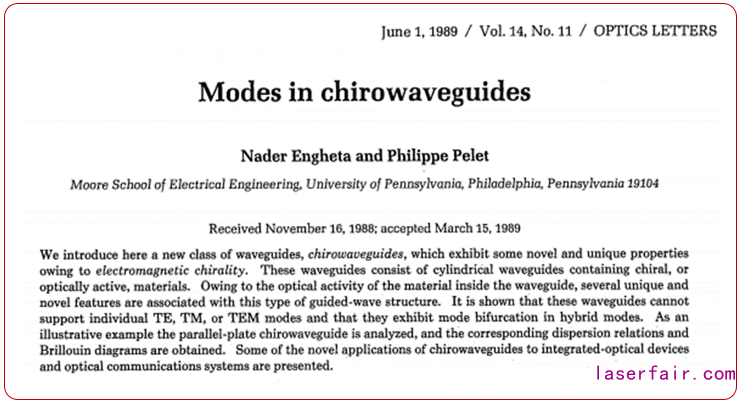 [3] N. Engheta. Modes in Chirowaveguides. Opt. Lett. 1989, 14(11): 593~596
