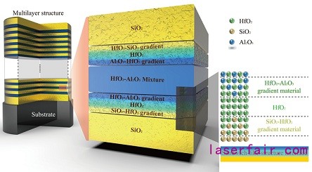 為此,研究人員提出了基于混合膜層和類(lèi)三明治結(jié)構(gòu)界面的二向色鏡(MDLM)設(shè)計(jì)新方法并進(jìn)行了實(shí)驗(yàn)驗(yàn)證。采用HfO2和Al2O3的混合材料作為折射率和光學(xué)帶隙可調(diào)諧的高折射率膜層,采用SiO2作為低折射率膜層,高、低折射率膜層之間采用類(lèi)三明治結(jié)構(gòu)的梯度界面取代傳統(tǒng)的離散界面。該MDLM設(shè)計(jì)二向色鏡表現(xiàn)出優(yōu)良的光譜性能,具有比TDLM更好的力學(xué)性能、更低的吸收和更高的抗激光損傷閾值。在532納米的激光損傷閾值和1064納米的激光損傷閾值均提升了近一倍。