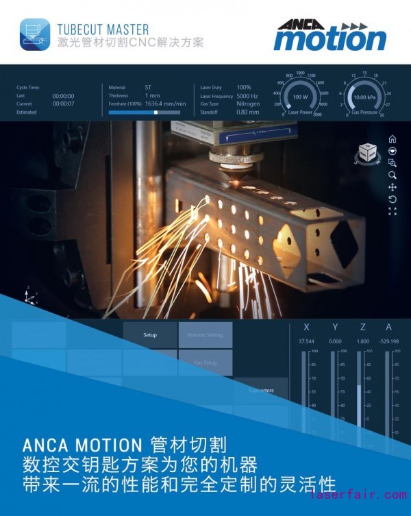 ANCA Motion的激光管切割解決方案是一個完整的CNC系統(tǒng)軟件包,配有最新發(fā)布的強(qiáng)大CNC硬件平臺和單線纜解決方案伺服驅(qū)動器,為激光制造商拓展了更多高端應(yīng)用可能。TubeCut Master搭載定制的GUI,直觀的3D圖形和簡單的配置向?qū)?,通過人性化的體驗提供先進(jìn)的管切割解決方案。憑借ANCA Motion的Commander軟件,沒有編程經(jīng)驗的電氣工程師也可以用TubeCut Master輕松實現(xiàn)從顏色,品牌到操作的自定義。同時,ANCA Motion一直在不斷豐富其激光切割產(chǎn)品種類,為高端激光OEM提供先進(jìn)的管切割解決方案。