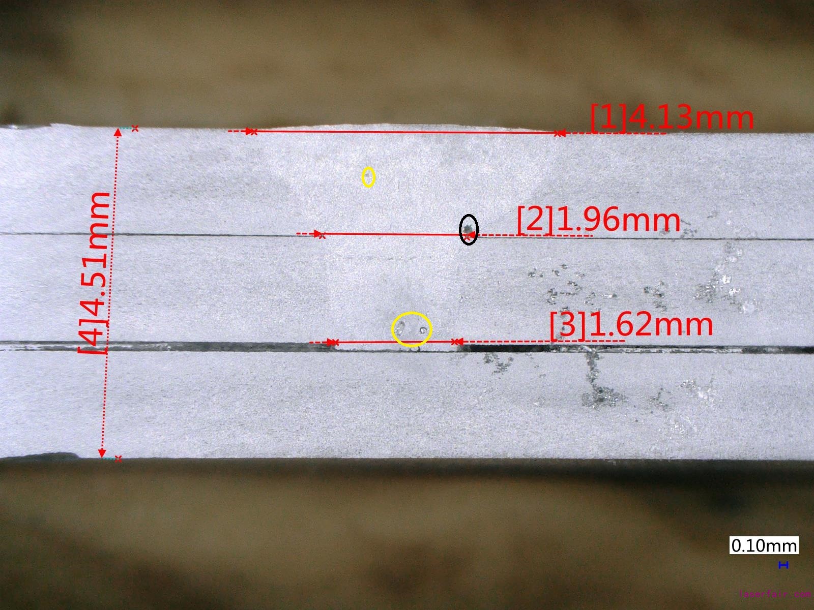 黑圈內(nèi)是由于試板間隙造成的孔,黃圈內(nèi)為氣孔