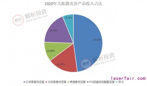 小功率激光設備主要應用于消費電子領域,公司在該領域主要客戶包括蘋果、華為等著名廠商。也正是得益于消費電子行業(yè)的復蘇,2020年公司小功率激光打標、精密焊接、精密切割等業(yè)務實現營業(yè)收入57.12億元,同比增長61.78%。