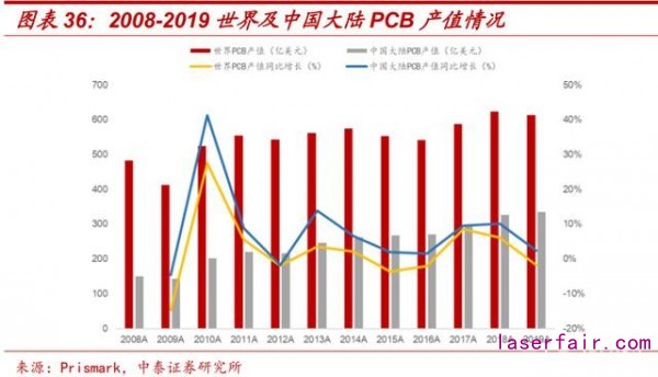 大族激光的PCB業(yè)務主要是為PCB企業(yè)提供機械鉆孔機、鐳射鉆孔機、LDI設備、精密測試機、激光成型機等,覆蓋PCB加工中鉆孔、成型、曝光、測試等多環(huán)節(jié)。