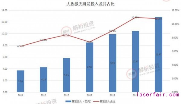 此外,公司還進行縱向整合,向上游核心零部件激光器延伸,實現了激光器、控制系統(tǒng)的自主研發(fā)與制造,利于降低公司生產成本。