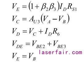 結(jié)合光纖激光器的整體結(jié)構(gòu)對(duì)泵浦源驅(qū)動(dòng)電路中的恒流電路進(jìn)行分析,恒流電路本身由三極管 Q2、高頻功率放大器 Q3 所組成,屬于復(fù)合管結(jié)構(gòu),可用于電流放大。它可有效防止共用端負(fù)載加載到反饋網(wǎng)絡(luò)上,主要利用二極管 LD 串聯(lián)調(diào)整 Q3 部分,實(shí)現(xiàn)對(duì)二極管 LD驅(qū)動(dòng)電流的有效控制。