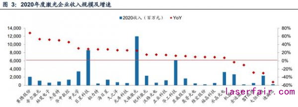 受益于制造業(yè)投資的回升,2020年度,80%的激光上市公司收入保持增長。其中增 速較高的公司,例如賽騰股份、帝爾激光與柏楚電子等,都是偏應(yīng)用層面的,為客 戶提供解決方案,直接受益于下游擴(kuò)產(chǎn)或技術(shù)路演的改變。