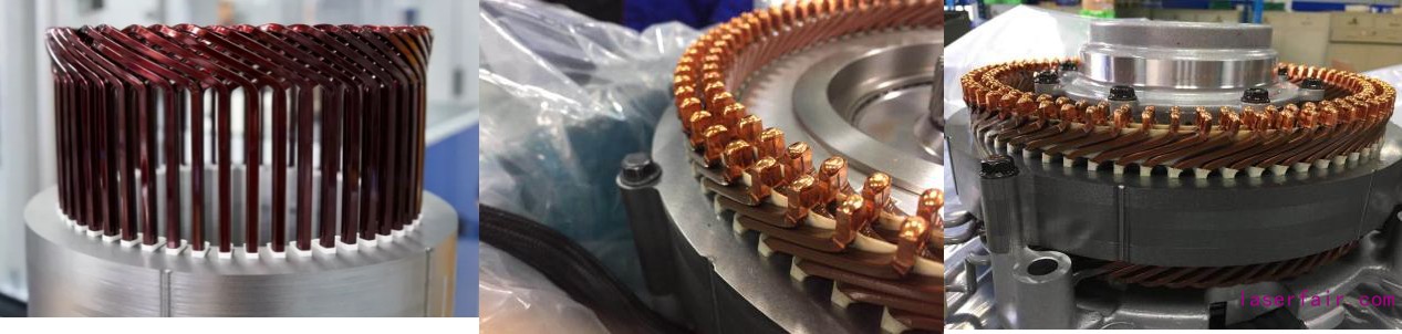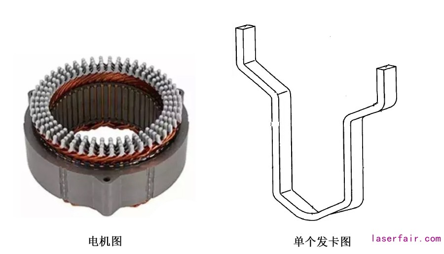 發(fā)卡電機(jī)就是定子繞組的形狀像發(fā)卡。定子制造過程中,先把繞組做成像發(fā)卡一樣的形狀再穿進(jìn)定子槽內(nèi),再在另外一端按設(shè)計(jì)把發(fā)卡的端部焊接起來。銅線為扁的,常規(guī)電機(jī)為圓形,汽車驅(qū)動(dòng)電機(jī)與發(fā)電機(jī)用。