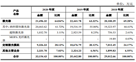 當(dāng)前英諾激光主營業(yè)務(wù)收入按產(chǎn)品分類的主要構(gòu)成情況如下: