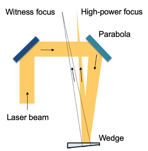 這種新方法的核心是一個具有三個關(guān)鍵屬性的激光架構(gòu)。首先,它每秒同時提供五個高功率脈沖和一千個低功率脈沖,所有這些脈沖都遵循相同的路徑。其次,光束線的設(shè)計經(jīng)過優(yōu)化,使高功率脈沖和低功率脈沖的大小和發(fā)散度相匹配。最后,它用一個創(chuàng)新的楔形反射鏡取代了其中一個反射光束線鏡,該反射鏡的前表面和后表面都有特殊涂層。