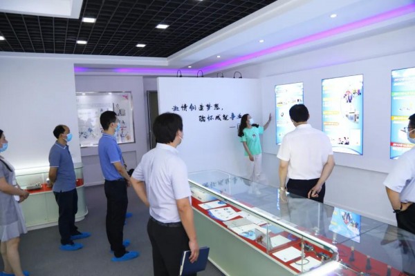 20周年陳列室內(nèi),在講解員生動(dòng)地介紹下,市科技局領(lǐng)導(dǎo)一行對(duì)金海創(chuàng)科技的產(chǎn)業(yè)布局、發(fā)展歷程及企業(yè)文化有了更進(jìn)一步的了解。