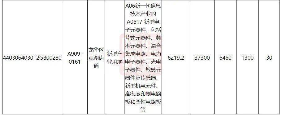 兩宗地準(zhǔn)入行業(yè)均為A06新一代信息技術(shù)產(chǎn)業(yè)的A0617 新型電子元器件,包括片式元器件、頻率元器件、混合集成電路、電力電子器件、光電子器件、敏感元器件及傳感器、新型機(jī)電元件、高密度印刷電路板和柔性電路板等。