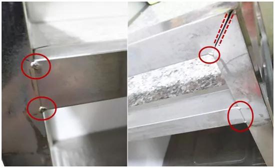從上圖中可見,電弧焊只是在連接口處簡單做焊點,而且邊角縫隙并未進(jìn)行焊接固定,這種為了省事的做工看起來很粗糙,鋼架結(jié)構(gòu)固定力是不夠的,而且也不美觀。