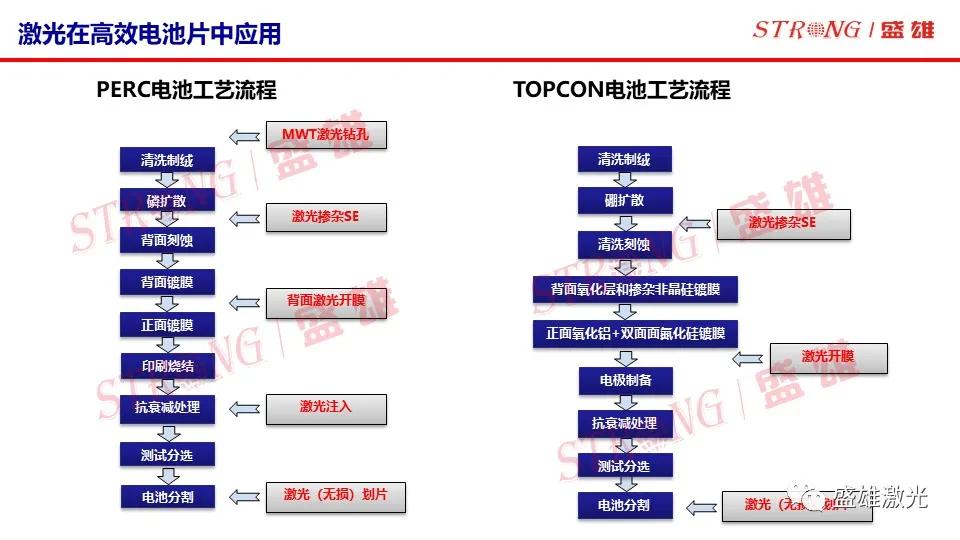 當(dāng)前光伏發(fā)電已在全球許多國(guó)家和地區(qū)成為最經(jīng)濟(jì)的發(fā)電方式,其將成為未來(lái)能源發(fā)展的第一主角,而激光技術(shù)將助力光伏產(chǎn)業(yè)高效發(fā)展。陶雄兵講述了激光在高效電池片中的應(yīng)用,展示PERC電池及TOPCON電池兩大工藝流程,“我們采用皮秒、飛秒激光,脈寬極短,其依靠自身極高的峰值功率,瞬間氣化材料,熱效應(yīng)微乎其微,不產(chǎn)生融珠,加工邊緣整齊”。