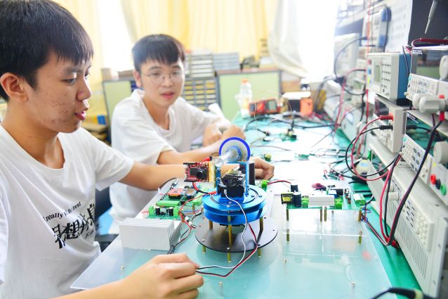 中山火炬職院的學(xué)生在老師的指導(dǎo)下進(jìn)行試驗(yàn)