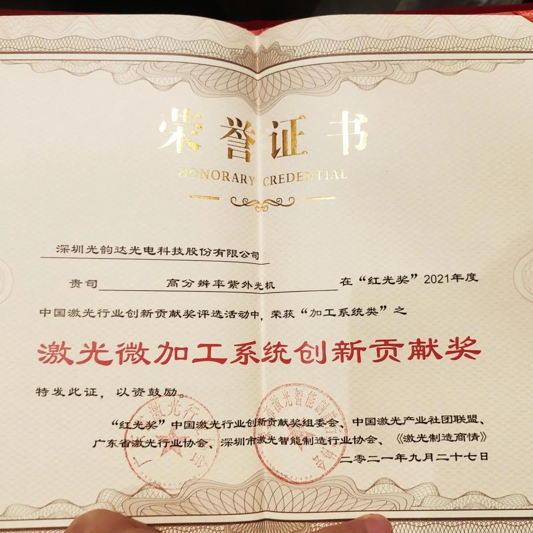 光韻 達(dá)高分辨率紫外光機(jī)榮獲“ 紅光獎(jiǎng)” 激光微加工系統(tǒng)創(chuàng)新貢獻(xiàn)獎(jiǎng)。
