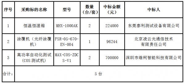 設(shè)備中標(biāo)公告