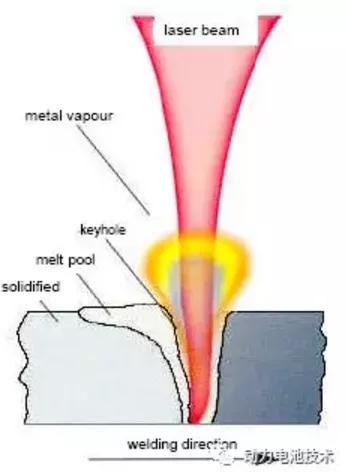 激光焊接是目前高端電池焊接推崇的主要方法。激光焊接是高能束激光照射工件,使工作溫度急劇升高,工件熔化并重新連接形成永久連接的過程。激光焊接的剪切強(qiáng)度和抗撕裂強(qiáng)度都比較好。電池焊接的好壞其導(dǎo)電性、強(qiáng)度、氣密性、金屬疲勞和耐腐蝕性能是典型的焊接質(zhì)量評價(jià)標(biāo)準(zhǔn)。