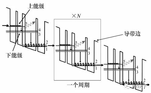 圖1. THz量子級(jí)聯(lián)激光器工作原理示意圖
