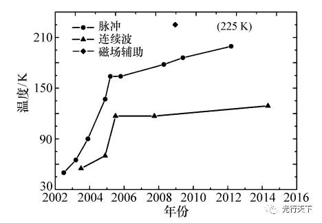 圖2. 不同時(shí)期THzQCL的最高工作溫度