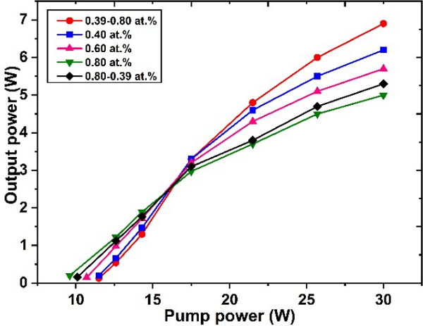 圖2.各種摻雜晶體的電光調(diào)Q激光輸出功率