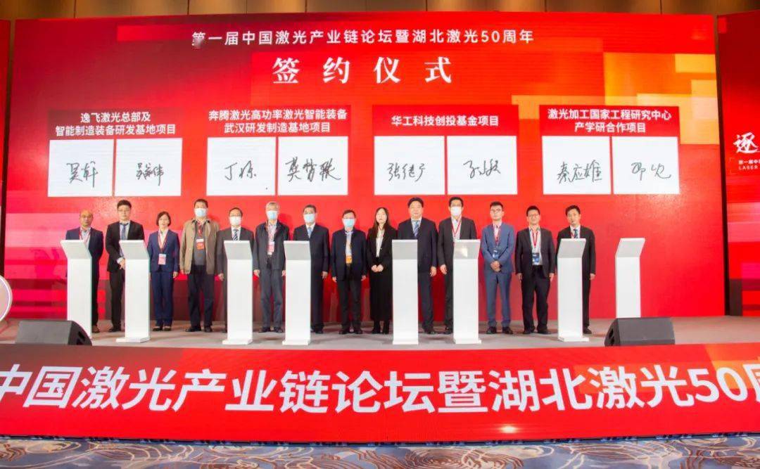 現(xiàn)場,逸飛激光總部及智能制造裝備研發(fā)基地、奔騰激光高功率激光智能裝備武漢研發(fā)制造基地、華工科技創(chuàng)投基金項(xiàng)目、激光加工國家工程研究中心產(chǎn)學(xué)研合作項(xiàng)目等簽約。