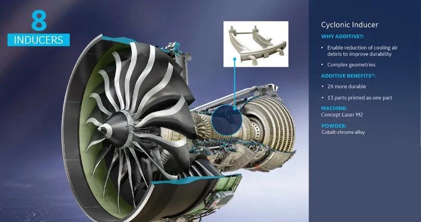 作為世界上推力最強(qiáng)大的噴氣發(fā)動(dòng)機(jī)(最大推力能夠達(dá)到60.8噸)GE9X同樣也安裝了多個(gè)3D打印零部件。