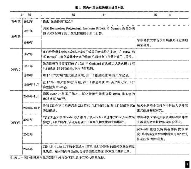 我國(guó)與國(guó)外在激光推進(jìn)研究領(lǐng)域存在著至少十年的差距。美國(guó)將激光發(fā)射小衛(wèi)星與當(dāng)年采用液體燃料推進(jìn)火箭放在同等重要的位置上。面對(duì)這樣的國(guó)際形勢(shì),對(duì)我國(guó)深入系統(tǒng)地開(kāi)展這方面的研究具有重大的戰(zhàn)略意義。