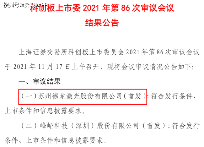 11月17日,據(jù)上交所發(fā)布科創(chuàng)板上市委2021年第86次審議會議結果顯示,蘇州德龍激光股份有限公司(以下簡稱“德龍激光”)科創(chuàng)板IPO成功過會。