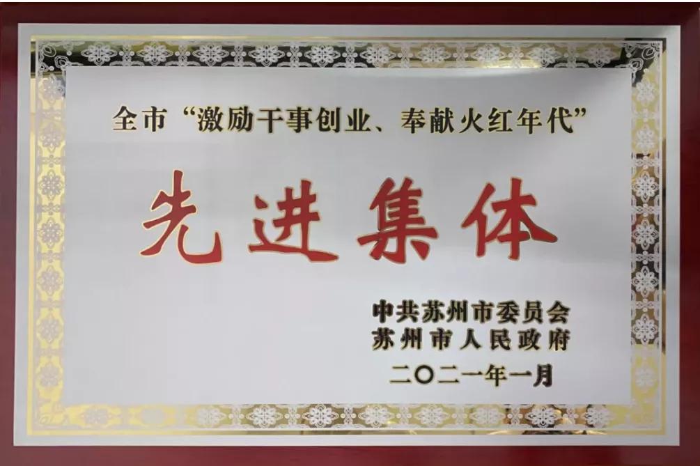 ●獲評蘇州市“激勵干事創(chuàng)業(yè)奉獻火紅年代”先進集體