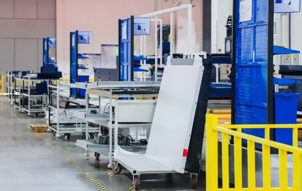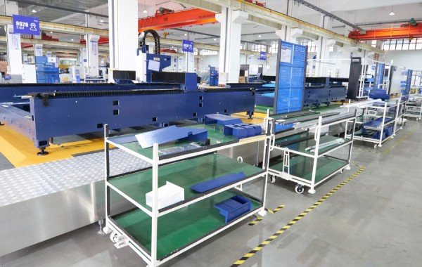 該車間投入500萬用于建設(shè)智能生產(chǎn)流水線,實(shí)現(xiàn)激光切割機(jī)流水線式生產(chǎn),智能化立體物料倉儲,以及不同生產(chǎn)工序間AGV物料自動運(yùn)轉(zhuǎn)。