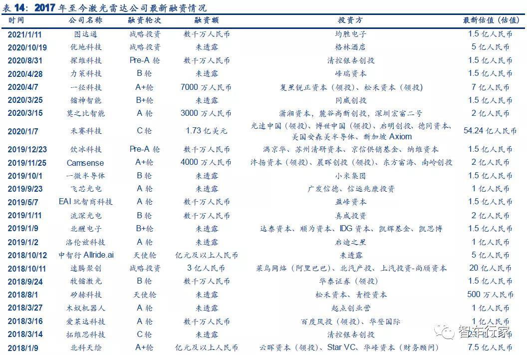 而從國內(nèi)公司來看,近年來我國中游強上游弱的局面得到了一定改觀。目前,以速騰聚創(chuàng)、禾賽科技、鐳神智能為代表的國內(nèi)激光雷達產(chǎn)業(yè)公司主要集中在中游位置,但上游也涌現(xiàn)出了一批優(yōu)秀公司,例如華為哈勃投資的芯視界微電子,小米集團領(lǐng)投、聯(lián)想和真格基金跟投的靈明光子等。