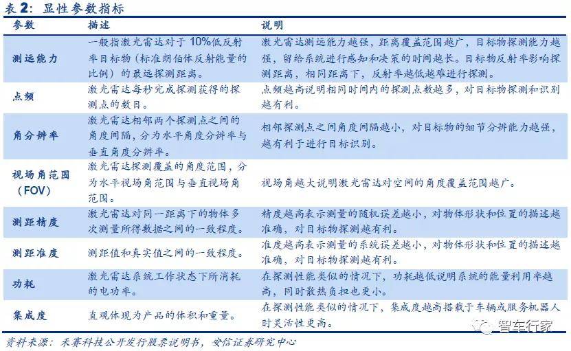激光雷達產(chǎn)品可以從顯性參數(shù)、實測性能表現(xiàn)及隱性指標等方面進行評估和比較。顯性參數(shù)指列示在產(chǎn)品參數(shù)表中的信息,主要包含測遠能力、點頻、角分辨率、視場角范圍、測距精準度、功耗、集成度(體積及重量)等。