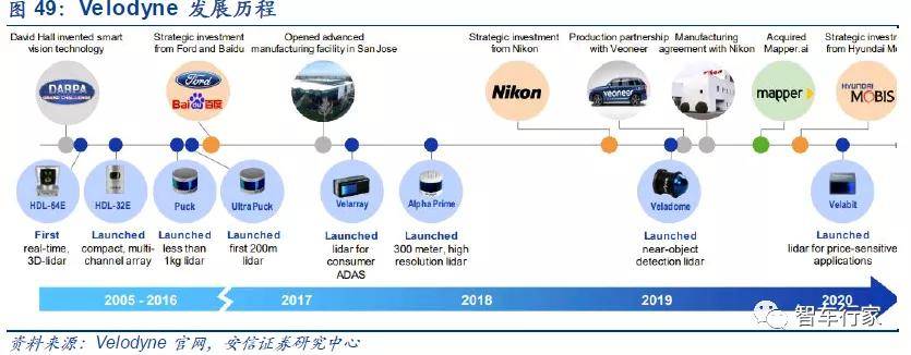Velodyne 是車載激光雷達領(lǐng)域的鼻祖,在機械式激光雷達獲得成功后,于 2015 年開始研發(fā)固態(tài)激光雷達,2017 年發(fā)布固態(tài)激光雷達 Velarray,2020 初基本完成設(shè)計。