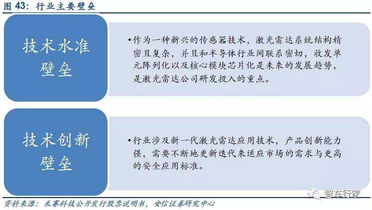 技術(shù)水準壁壘:作為一種新興的傳感器技術(shù),激光雷達系統(tǒng)結(jié)構(gòu)精密且復雜,精細的光機設(shè)計和收發(fā)對準、微弱信號的靈敏探測和快速響應(yīng)是實現(xiàn)探測目標的前提。
