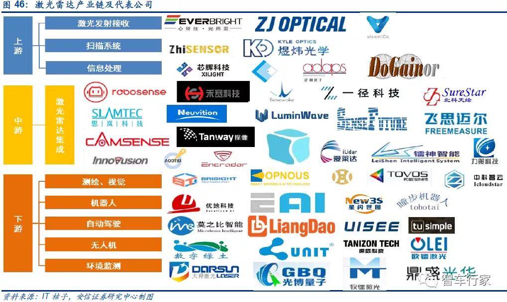 下游主要包括測繪視覺、機器人、自動駕駛、無人機和環(huán)境監(jiān)測五個應(yīng)用方向,目前激光雷達主要應(yīng)用在自動駕駛領(lǐng)域,應(yīng)用領(lǐng)域我國公司數(shù)量較多,例如數(shù)字綠土、 EAI 等公司在各自領(lǐng)域內(nèi)也具有較強的競爭力。