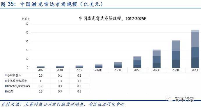 從高級輔助駕駛領(lǐng)域來看,中國已經(jīng)成為全球最大的新車銷售市場。根據(jù)沙利文的研究報告,至2025 年,中國激光雷達市場規(guī)模將達到 43.1 億美元,較 2019 年實現(xiàn) 63.1%的年均復合增長率,其中車載領(lǐng)域即無人駕駛和高級輔助駕駛是主要組成部分。