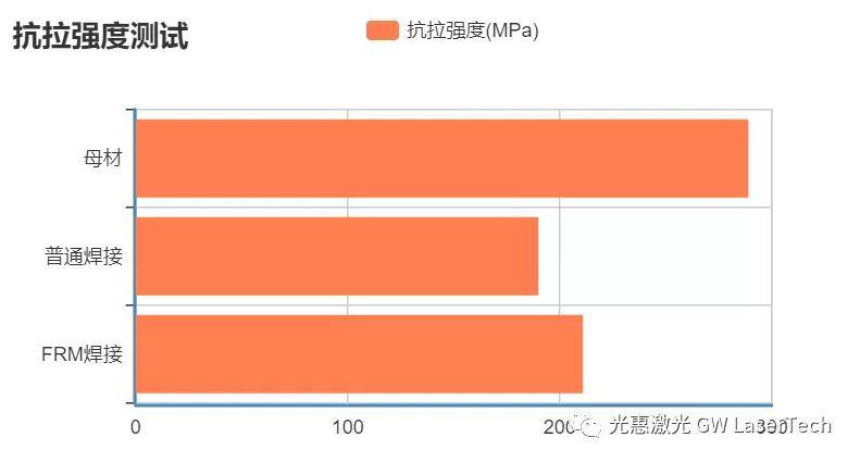 對焊接完后的焊縫進行拉力測試,F(xiàn)RM焊接的抗拉強度要優(yōu)于普通激光器焊接。