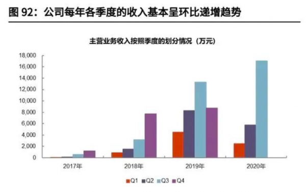 營(yíng)收角度:根據(jù)公司招股說(shuō)明書(shū)披露,2017-2020Q3,公司營(yíng)業(yè)收入增長(zhǎng)迅速,其核心來(lái)源為激光雷達(dá)產(chǎn)品銷(xiāo)售,并且隨著已有激光雷達(dá)產(chǎn)品打開(kāi)市場(chǎng)以及新產(chǎn)品發(fā)布,每年各季度的收入基本呈環(huán)比遞增趨勢(shì)。