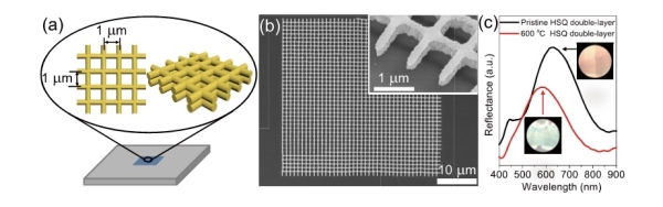 圖3.飛秒激光直寫的具有耐熱性和仿生結(jié)構(gòu)色的HSQ雙層陣列結(jié)構(gòu)
