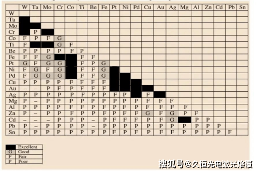 圖3 不同元素組合進(jìn)行激光焊接時(shí)金屬的相容性