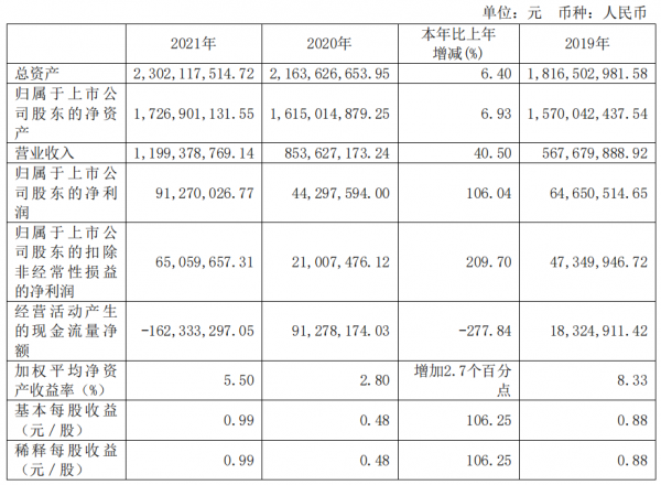 3月30日晚間,杰普特(688025.SH)發(fā)布2021年年度報(bào)告,報(bào)告期內(nèi),公司實(shí)現(xiàn)營業(yè)收入為11.99億元,同比增長40.50%;歸屬于上市公司股東的凈利潤為9127萬元,同比增長106.04%;歸屬于上市公司股東的扣除非經(jīng)常性損益的凈利潤為6505.97萬元,同比增長209.70%;基本每股收益為0.99元/股。公司擬向全體股東每10股派發(fā)現(xiàn)金紅利人民幣3元(含稅)。