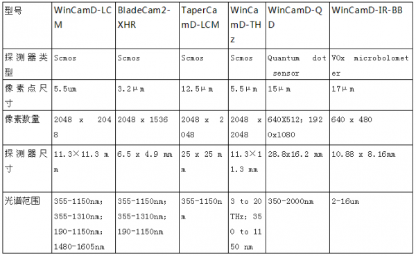 針對激光焦點(diǎn)的光斑測試需求,Dataray公司可以提供兩類光斑測試儀,一類是基于SCMOS相機(jī)的光斑測試儀,一類是基于狹縫掃描的光斑輪廓儀。Dataray公司基于相機(jī)的光斑輪廓儀的主要參數(shù)
