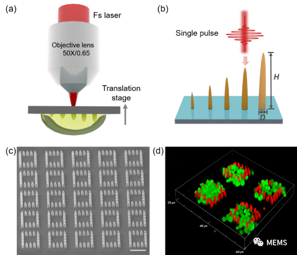 據(jù)麥姆斯咨詢報道,近日,中國科學(xué)院沈陽自動化研究所在飛秒激光微納加工及生物學(xué)應(yīng)用取得新進展。飛秒激光微納加工與雙光子4D打印是微納米機器人課題組新開辟的研究方向,旨在利用飛秒激光超快加工開展生物界面調(diào)控與柔性腦機接口研究,為生命科學(xué)和腦科學(xué)研究提供新的使能技術(shù)。