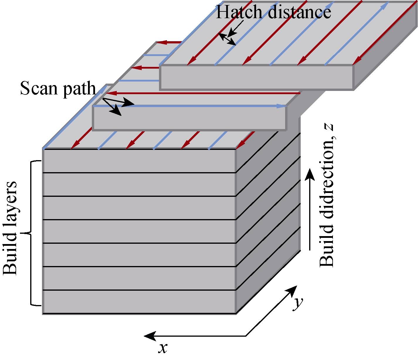金屬材料增材制造工藝(Additive manufacturing of metallic materials,AMMM)可以直接將三維數(shù)字模型加工為實(shí)際產(chǎn)品,與減材制造工藝相比,AMMM工藝在近凈成形方面具有天然的優(yōu)勢,例如可以減少產(chǎn)品設(shè)計(jì)和加工時間、節(jié)省原材料以及降低能耗等[1—2]。激光粉床熔融工藝(Laser powder bed fusion,L-PBF)利用激光束斑有區(qū)域選擇性地逐層熔化粉床上的粉層,成形精度較高,加工后構(gòu)件相對密度可接近100%,是AMMM技術(shù)中最有應(yīng)用前景的技術(shù)之一[3—5]。